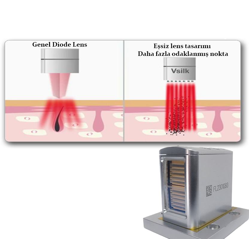 808 nm dalga boyu melanin tarafından en ideal şekilde emilir ve tüm cilt & kıl tiplerinde etkili sonuç verir.